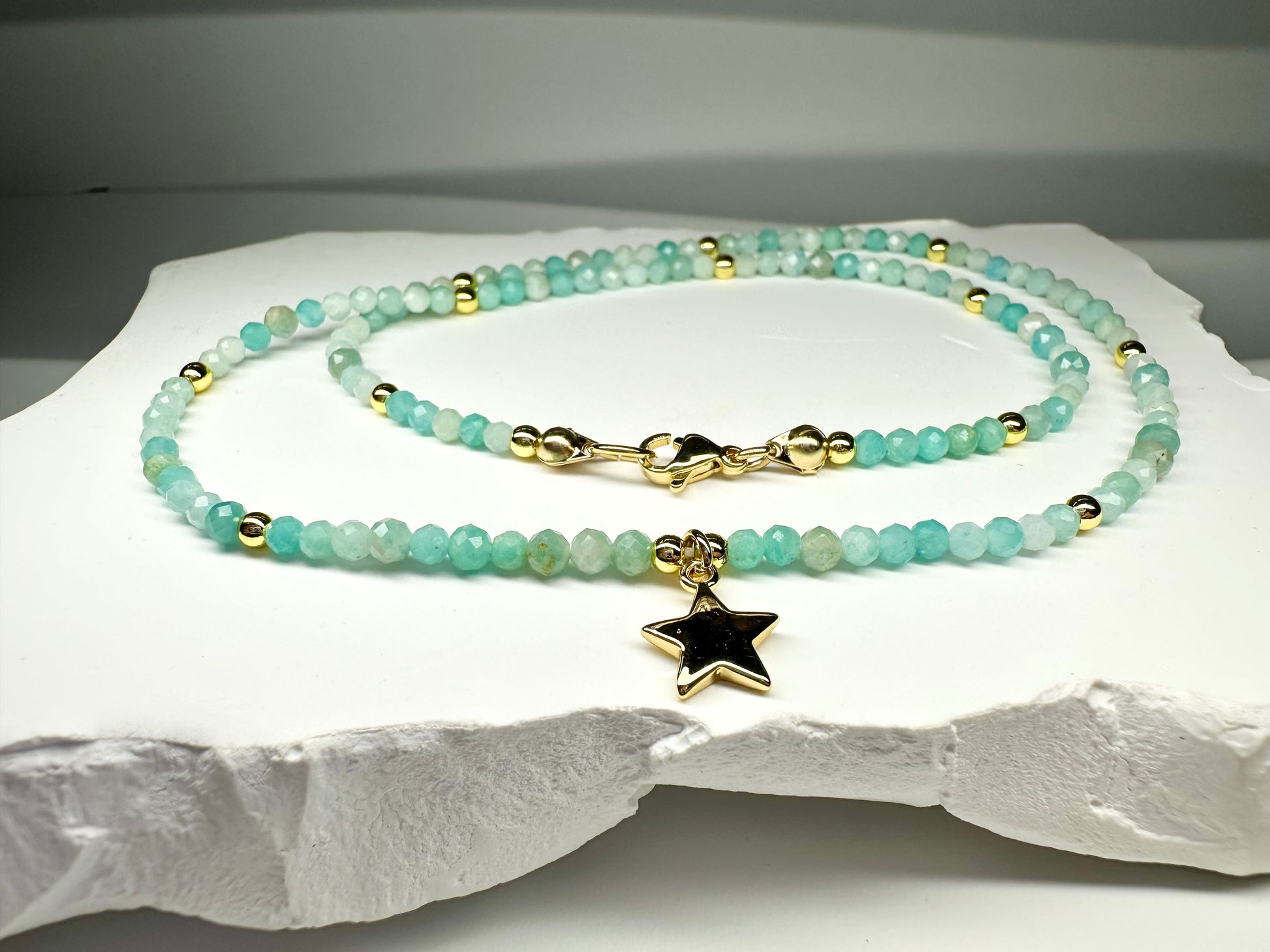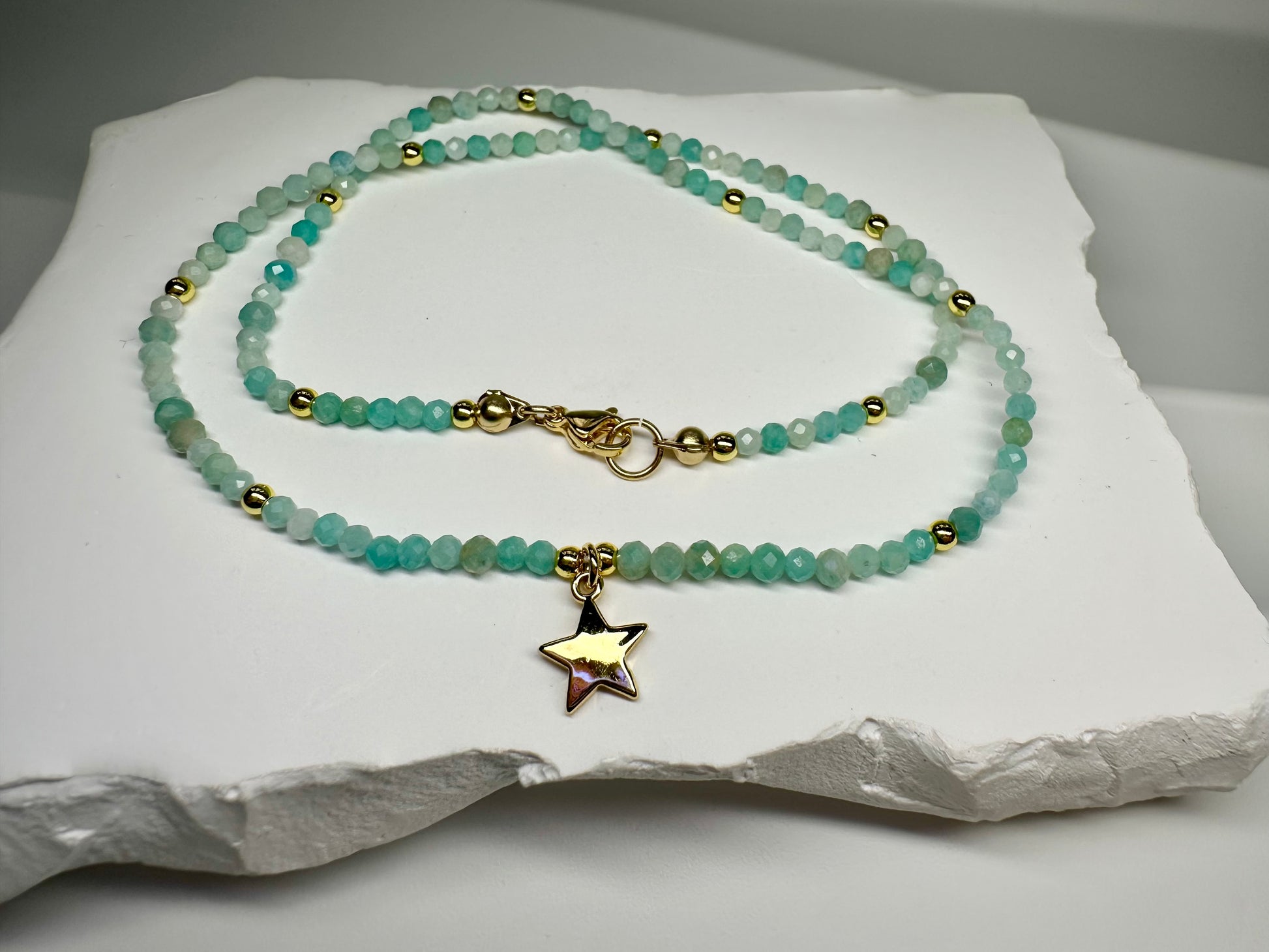 This handmade Amazonite necklace is a dainty crystal choker designed to soothe the soul and empower your voice. Known as the stone of truth and courage, Amazonite helps balance emotions, reduce stress, and support clear communication—making it the perfect everyday piece for grounding and grace.