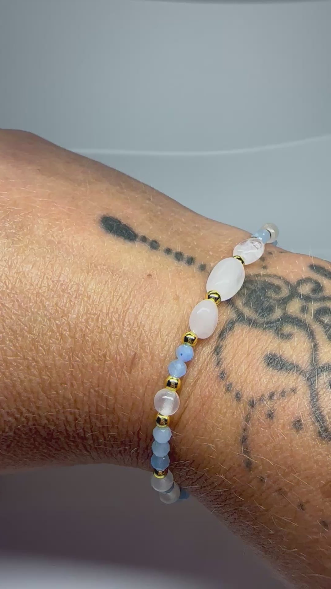 Aquarius Birthstone Bracelet – Aquamarine, Rose Quartz & Selenite | Handmade Zodiac Crystal Jewelry for Clarity & Love