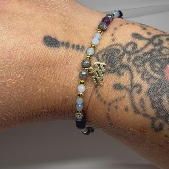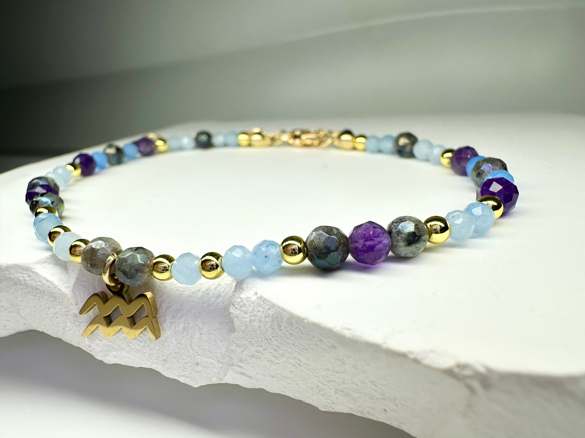 Aquarius Bracelet, Amethyst, Aquamarine, Labradorite, Astrology Birthday Gift