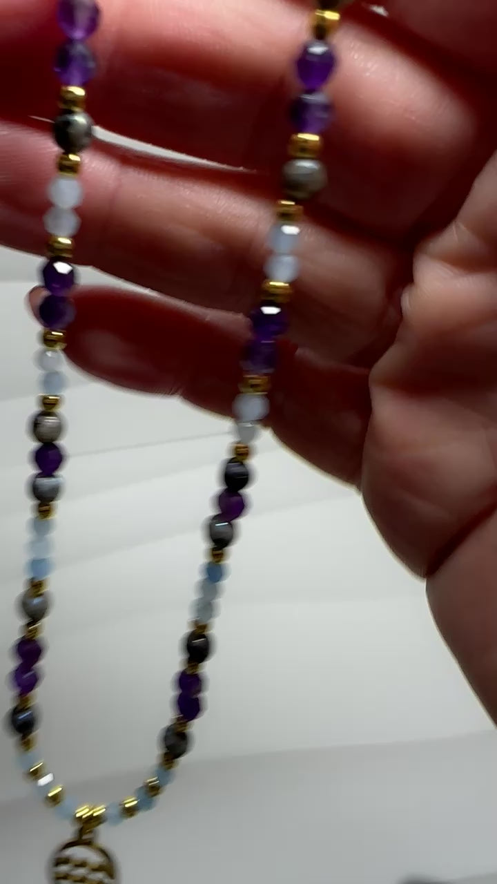 Aquarius Zodiac Necklace – Amethyst, Labradorite & Aquamarine for Intuition & Flow