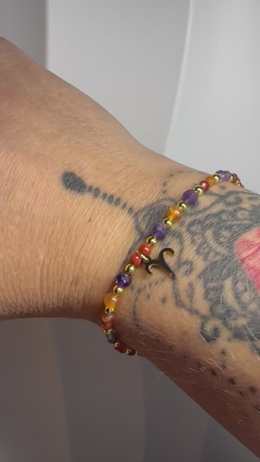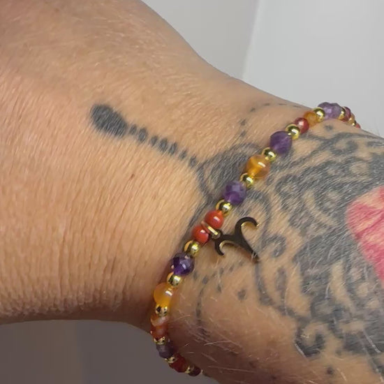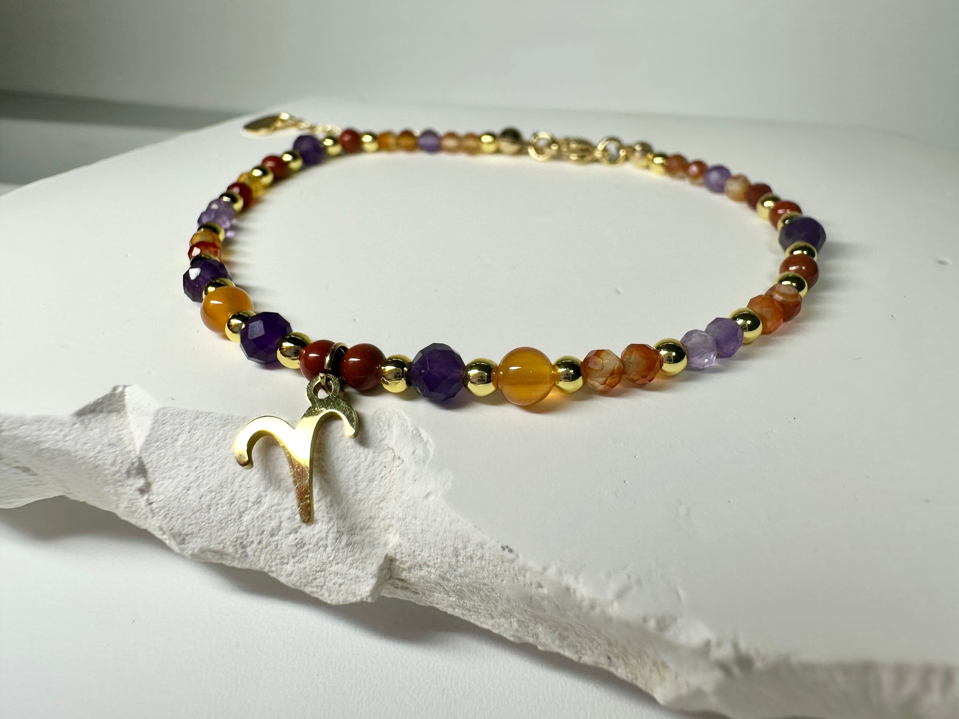This handmade beaded bracelet is crafted with Carnelian, Ariesβ power stone of courage and vitality, and Amethyst, the crystal of calm and clarity. Together, they create a perfect harmony for Aries energy β bold, passionate, and unstoppable, yet guided by wisdom.