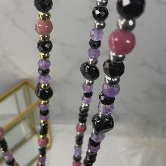 Black Tourmaline, Amethyst & Rhodonite Healing Necklace