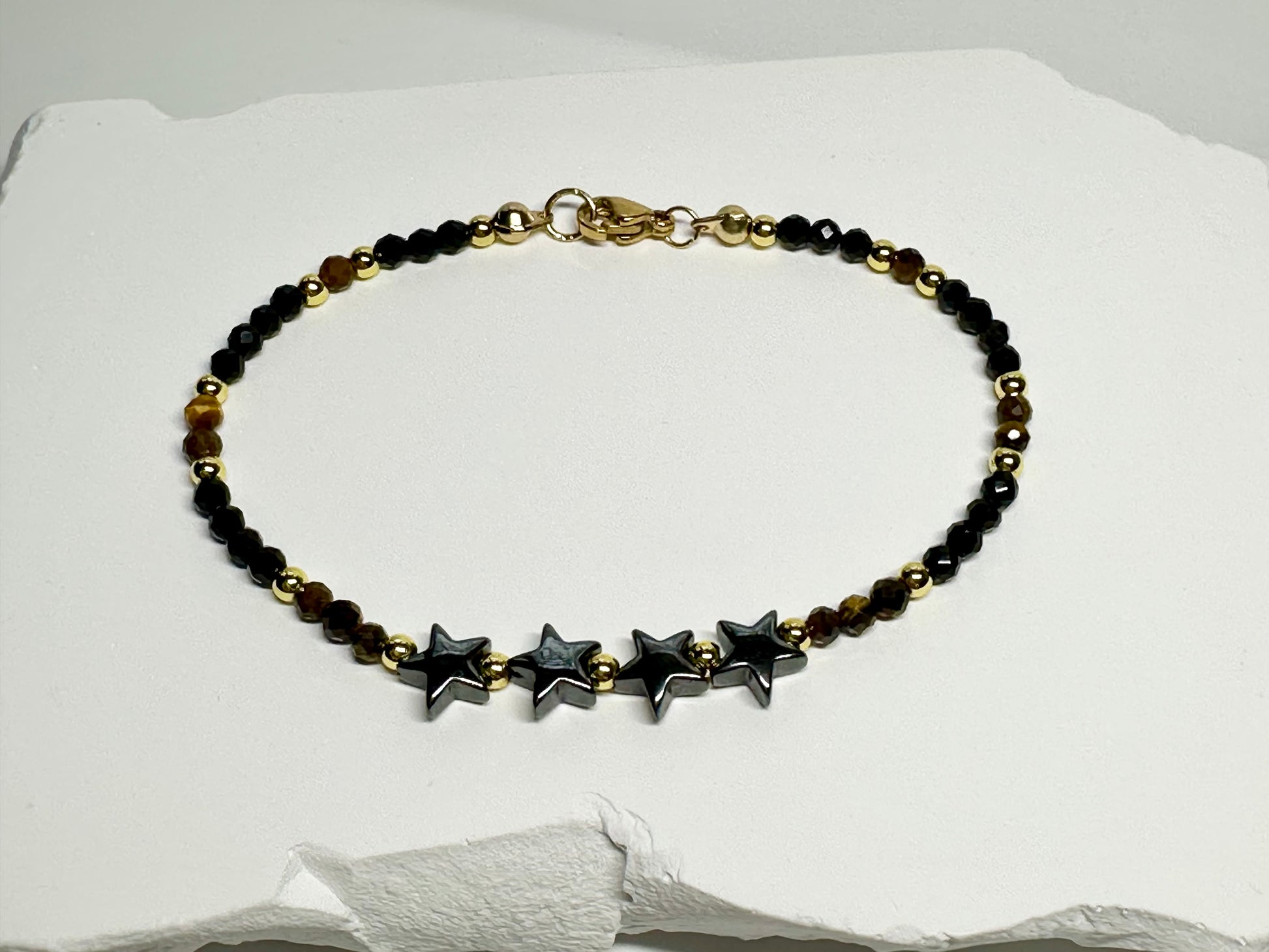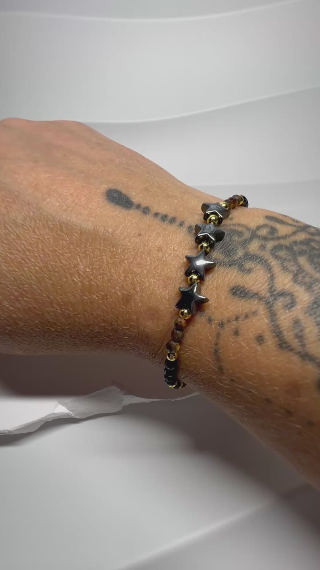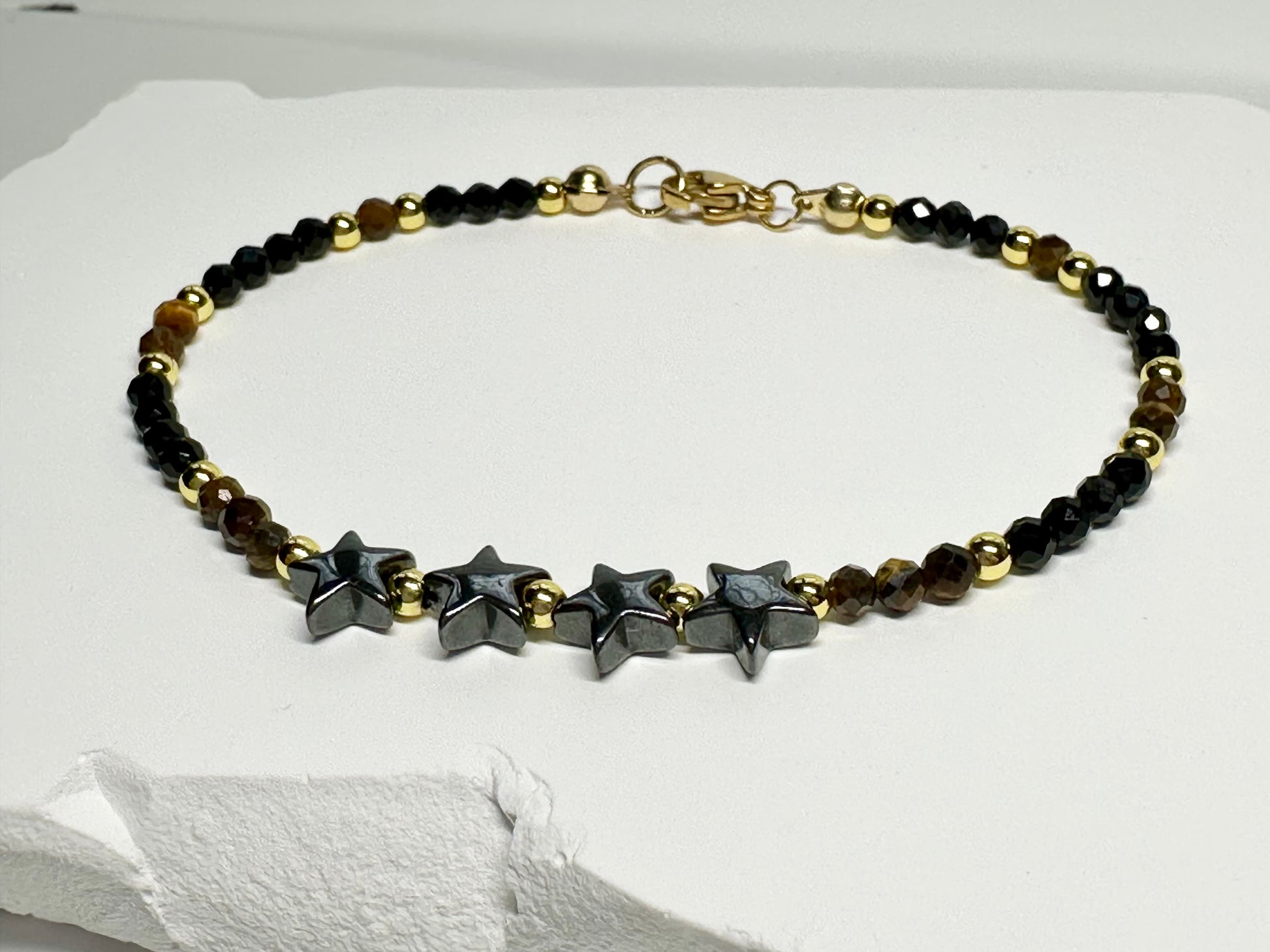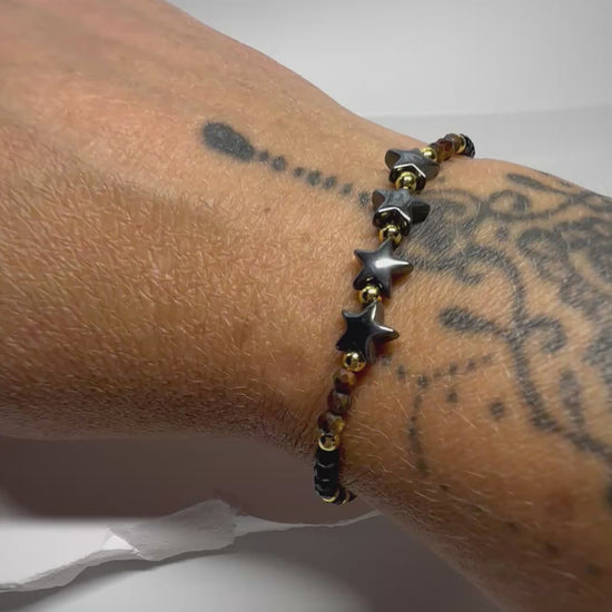Black Tourmaline, Tiger Eye & Hematite Stars Bracelet – Handmade Protection Jewelry for Strength, Focus & Energy Shielding