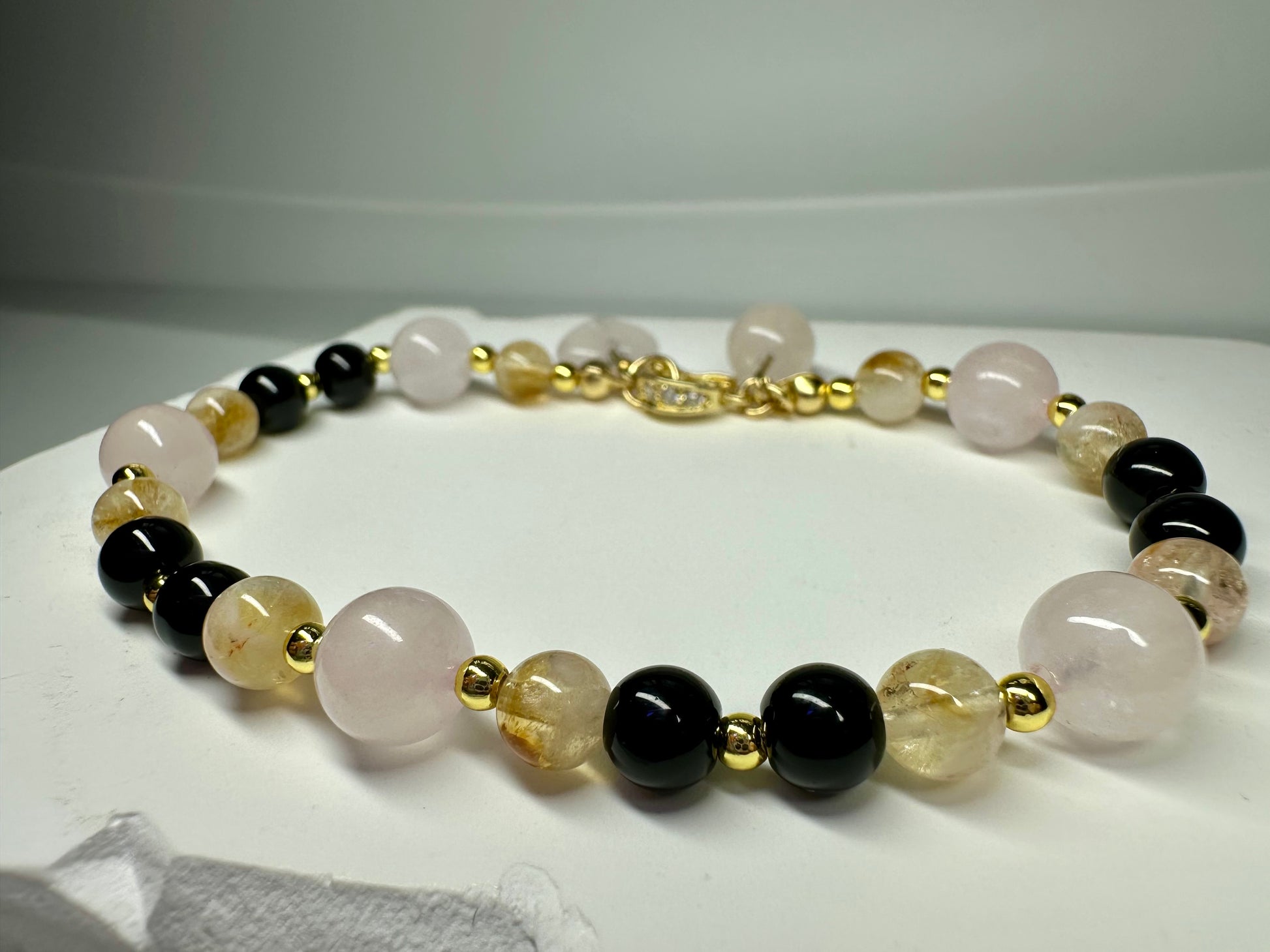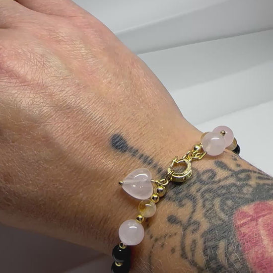Citrine, Black Tourmaline, Rose Quartz Bracelet – Protection, Love & Abundance Bracelet