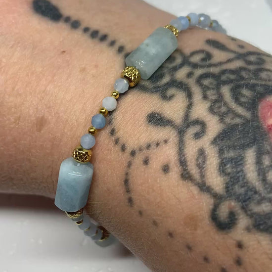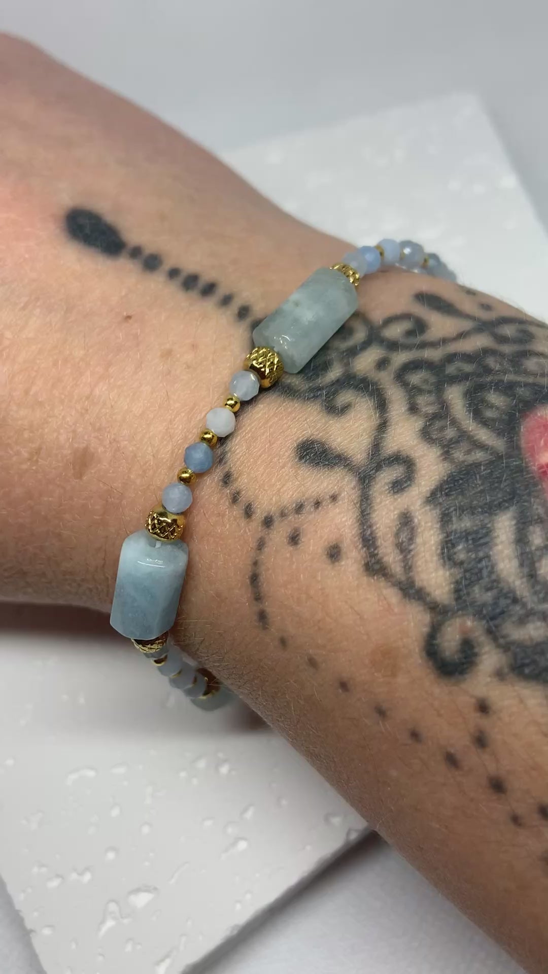 Aquamarine Bracelet with Gold Accents – Handmade Crystal Jewelry for Calm, Clarity & Inner Peace