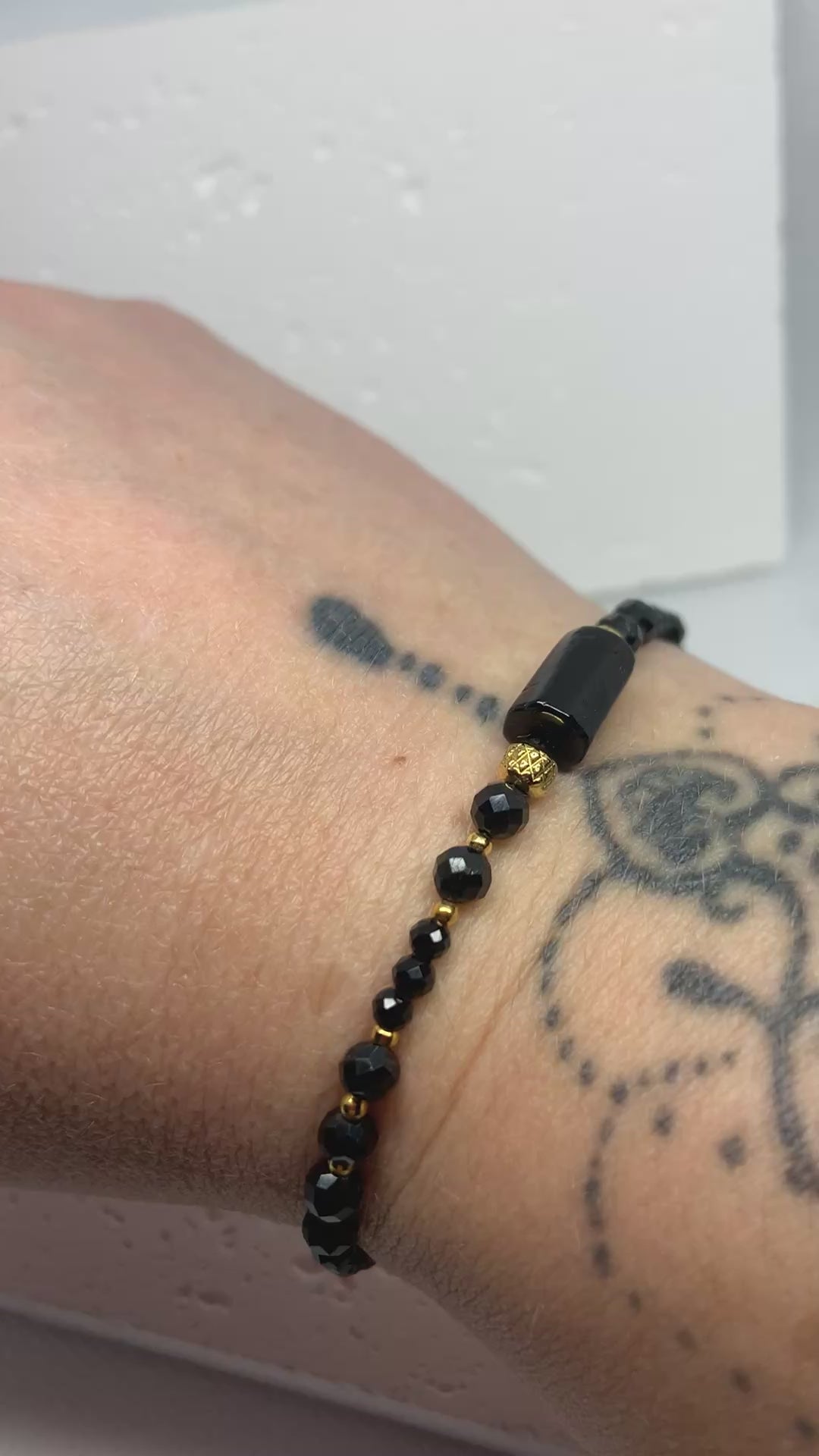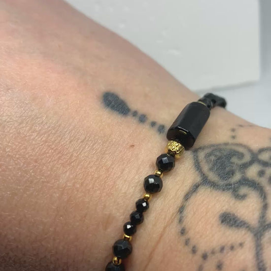 Black Tourmaline Bracelet with Gold Accents – Handmade Protection Jewelry for Strength & Style