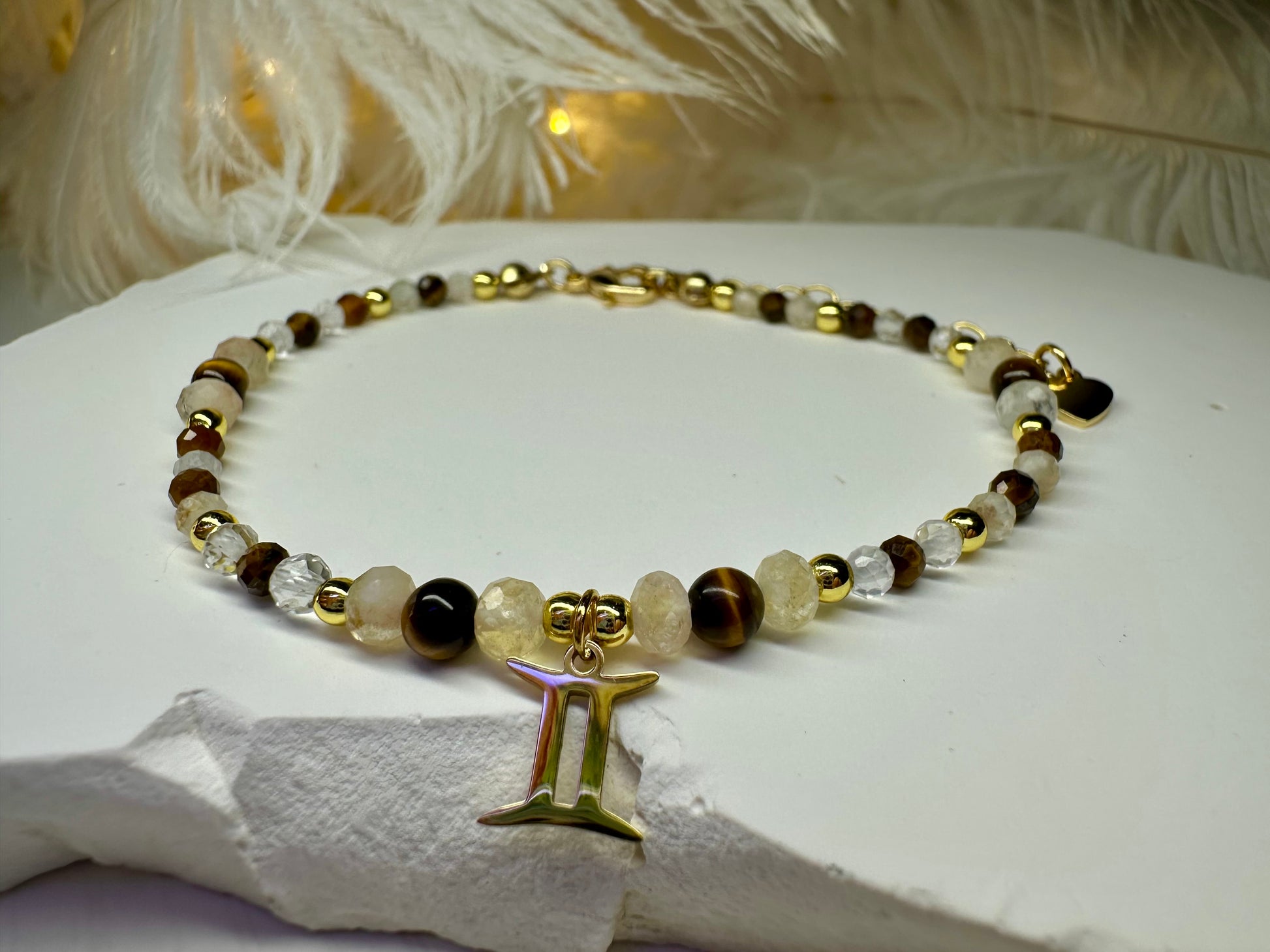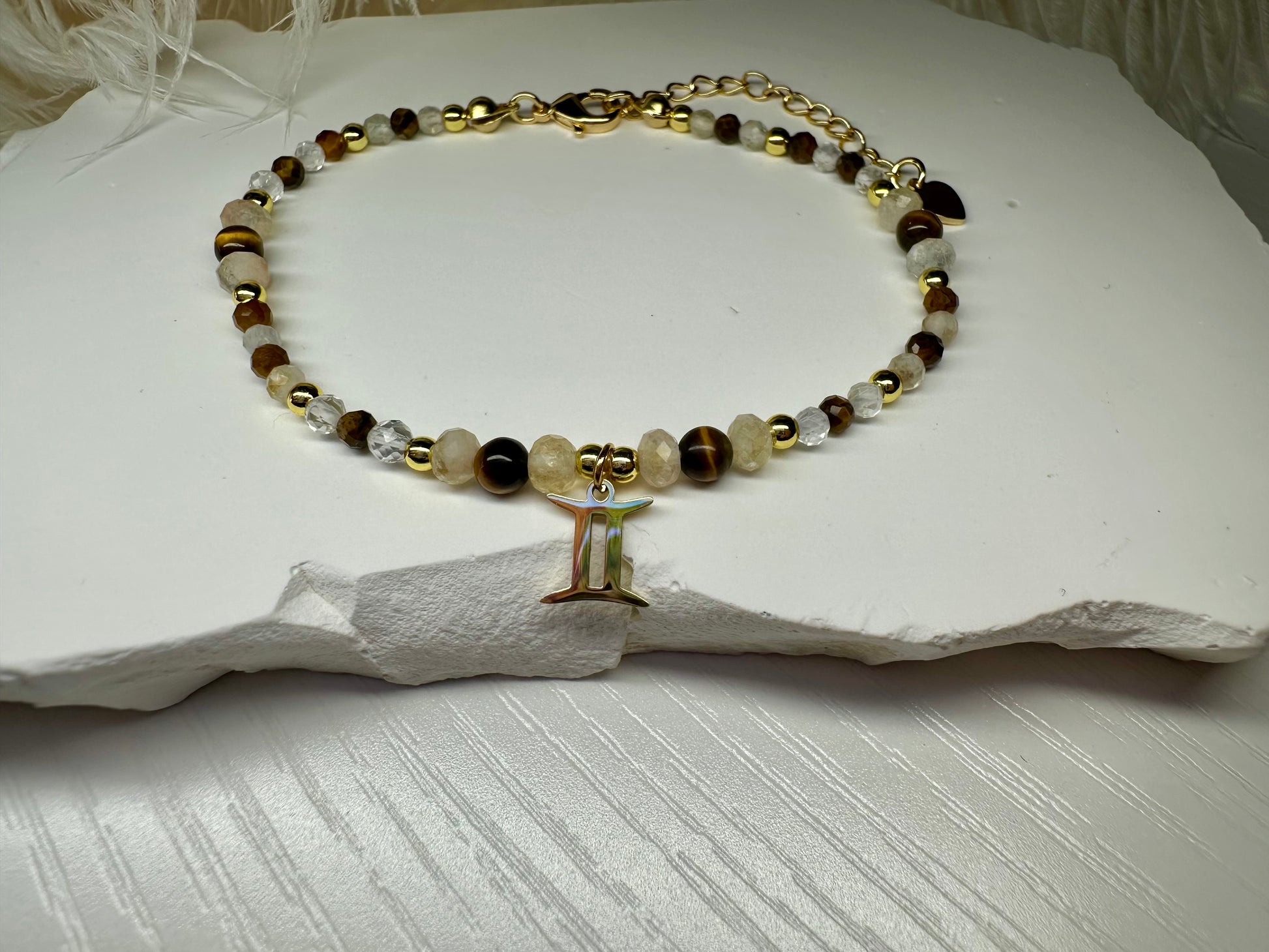 Handmade Gemini Zodiac Bracelet – Tiger Eye, Citrine & Clear Quartz