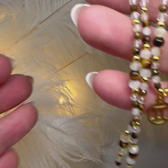 Handmade Gemini Zodiac Necklace – Tiger Eye, Citrine & Clear Quartz