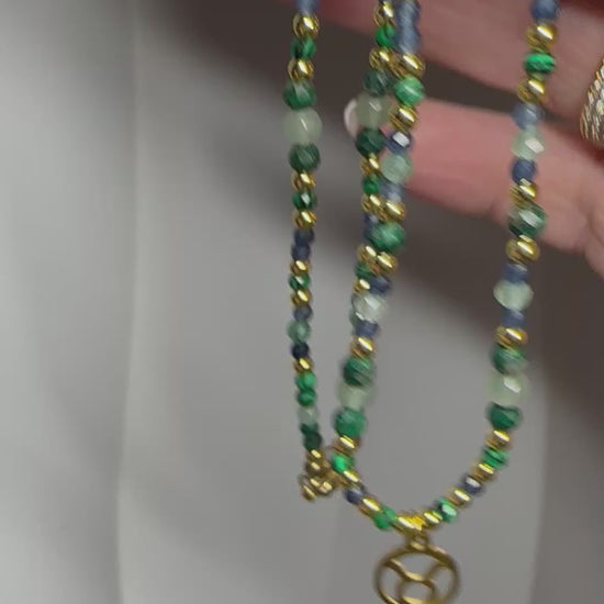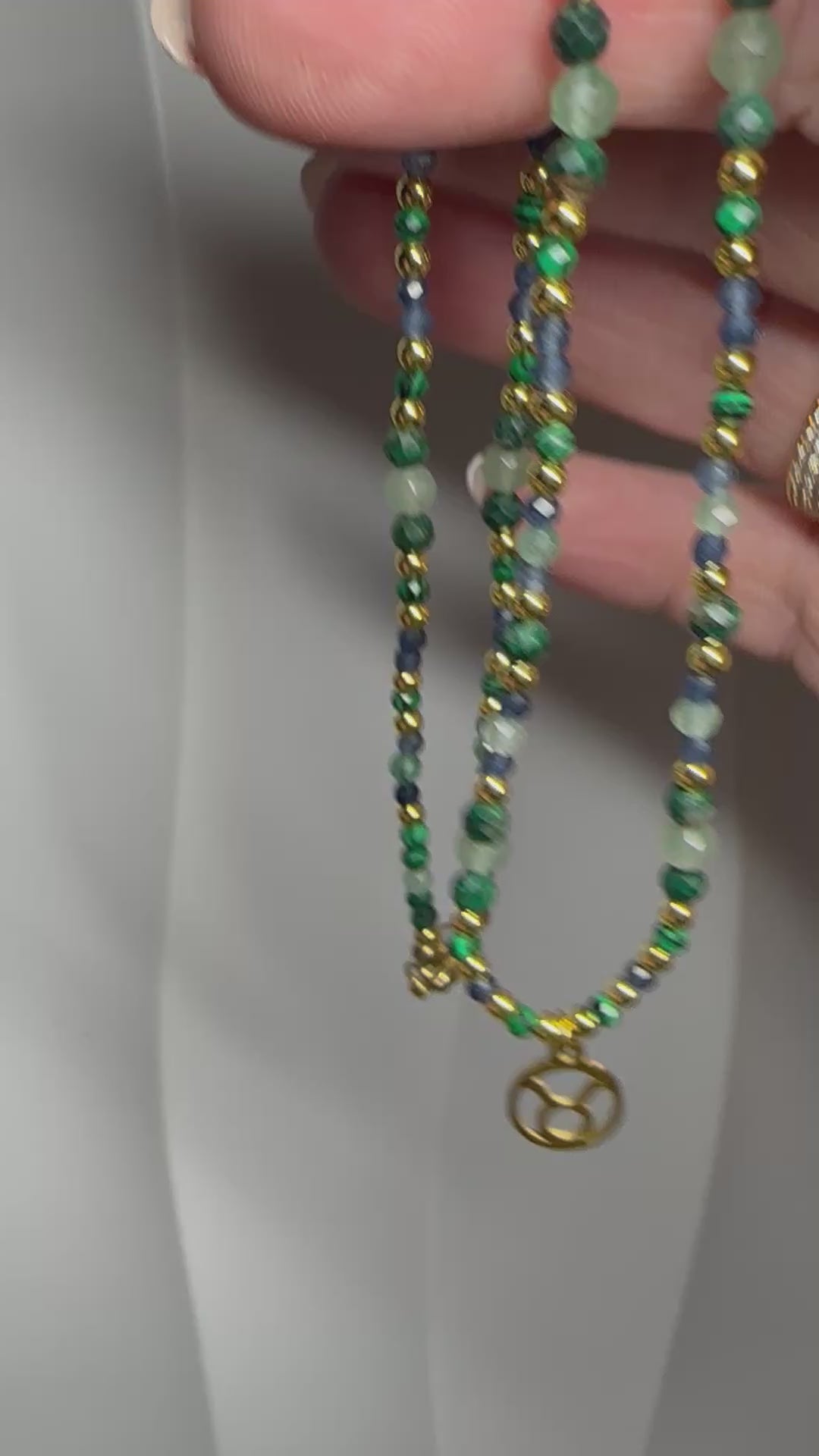 Handmade Taurus Zodiac Necklace – Malachite, Green Aventurine & Sapphire Beads