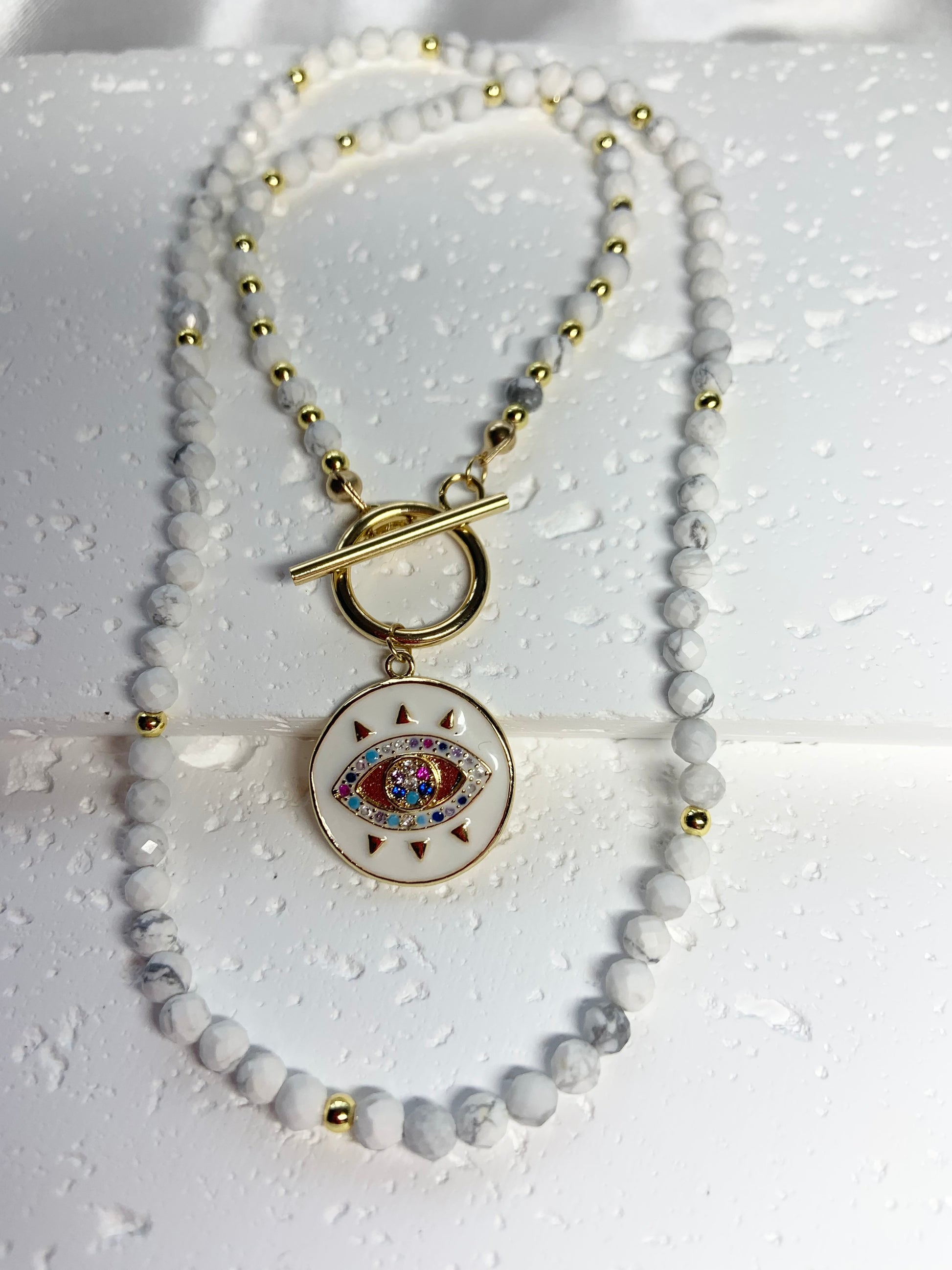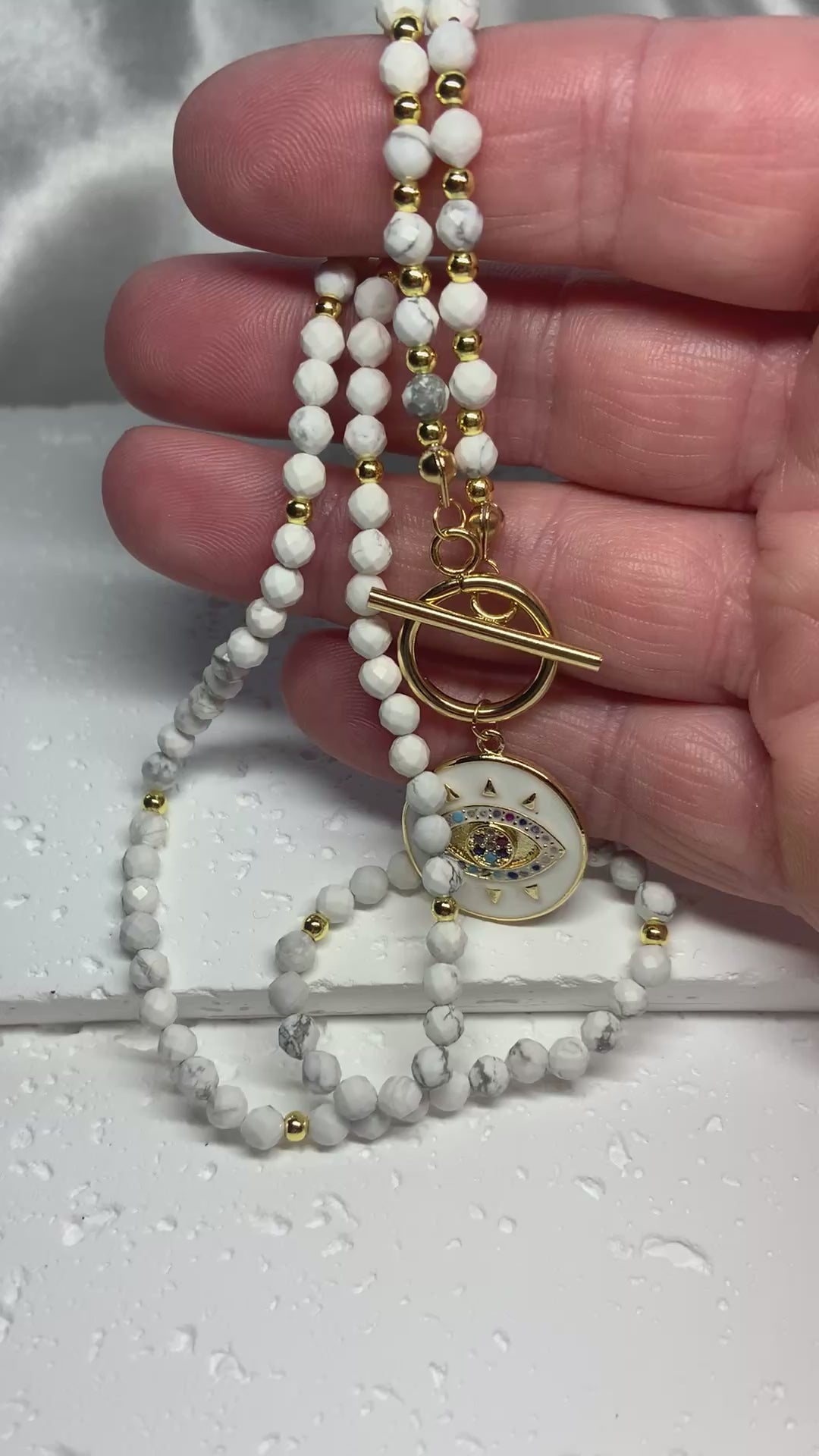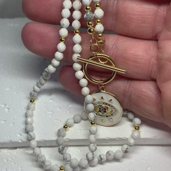 White Howlite Evil Eye Necklace – Gold Toggle Clasp | Handmade Protection Jewelry for Clarity & Energy Shielding