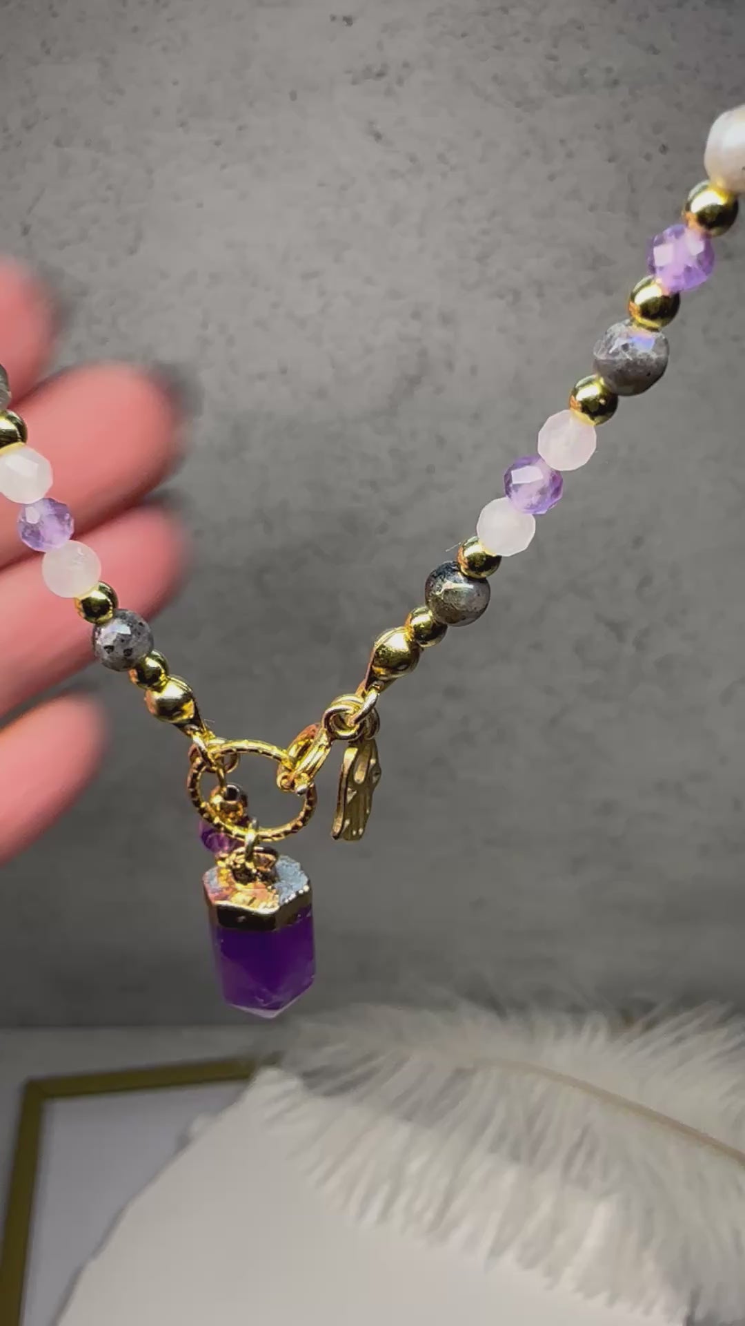 A necklace for intuition, love, and gentle protection — handcrafted with labradorite, rose quartz, and amethyst to support your heart and spirit on every level.