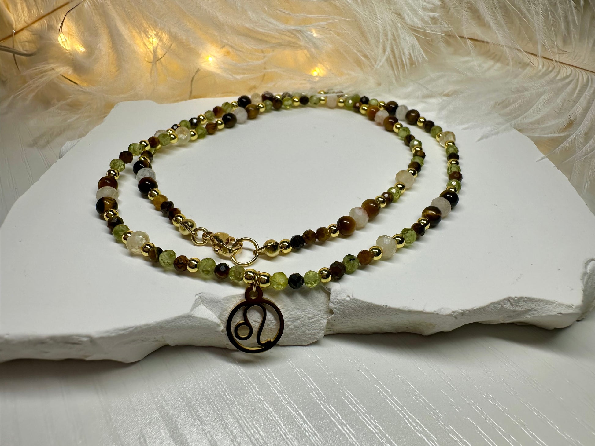 Leo Zodiac Jewelry Set – Handmade Peridot, Tiger Eye & Citrine Necklace and Bracelet Astrology Gift