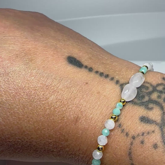 Moonstone, Rose Quartz & Amazonite Bracelet | Handmade Crystal Jewelry for Confidence, Love & Intuition