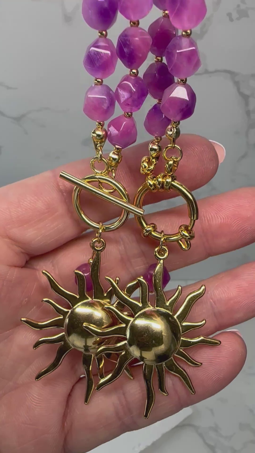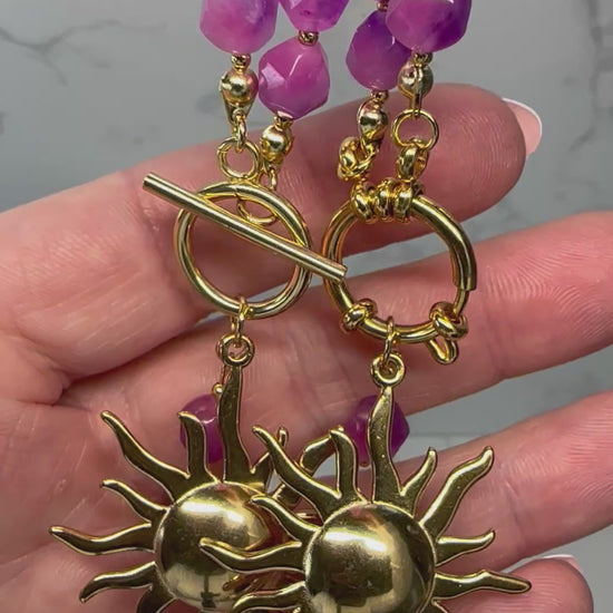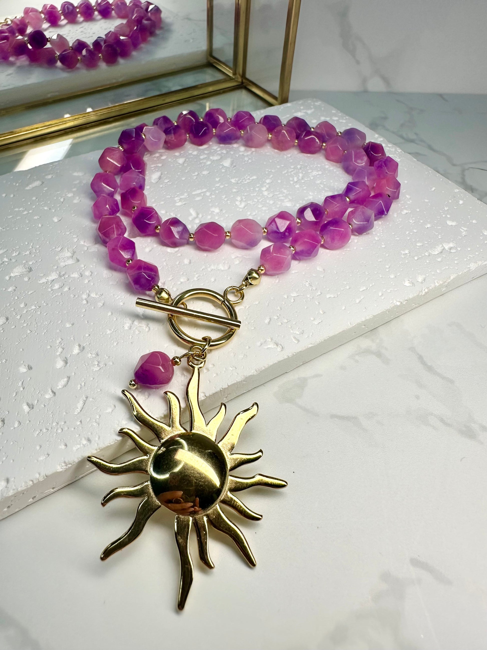Pink Jade Necklace – Handmade Bohoq Jewellery with Large Sun Charm