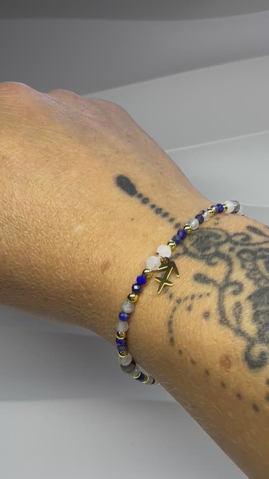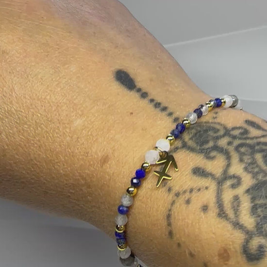 Sagittarius Zodiac Bracelet β Lapis Lazuli, Labradorite & Moonstone | Handmade Crystal Astrology Jewellery | Birthstone Gift for Her