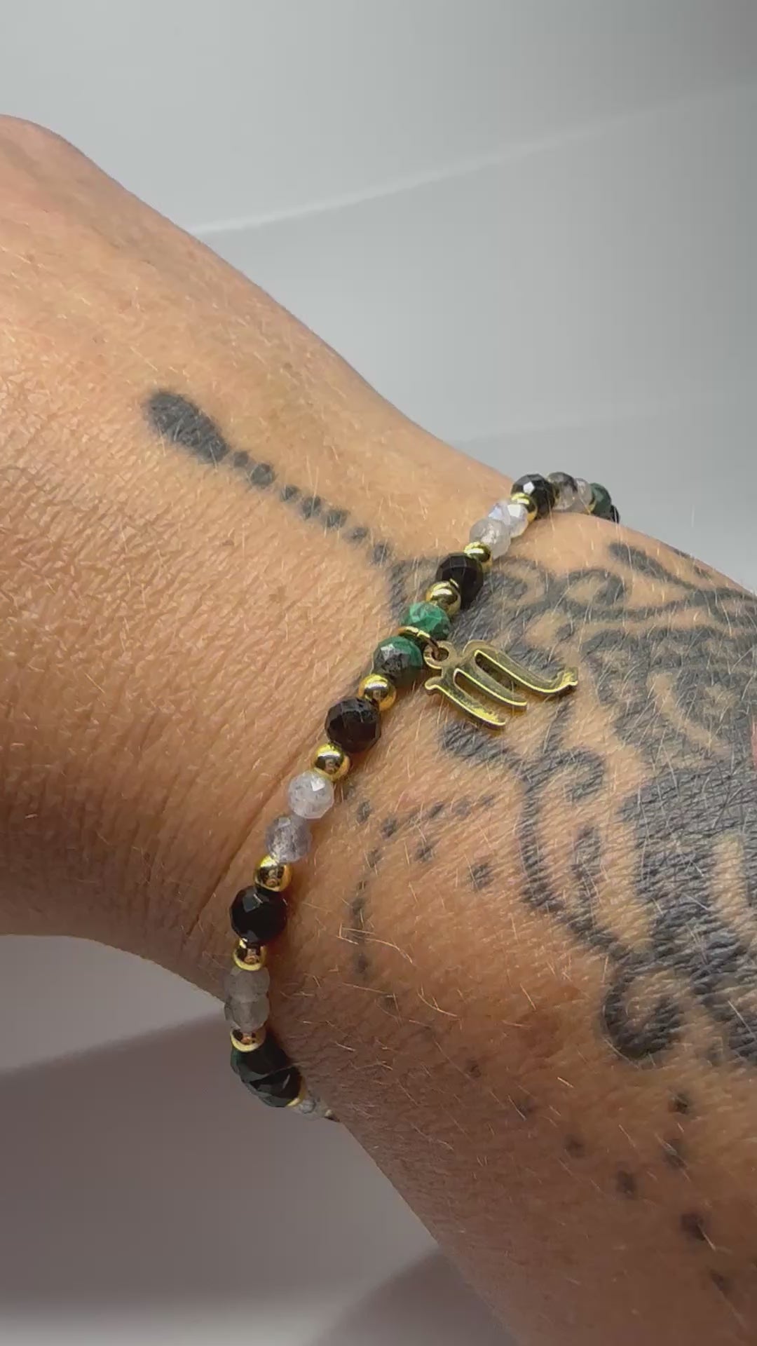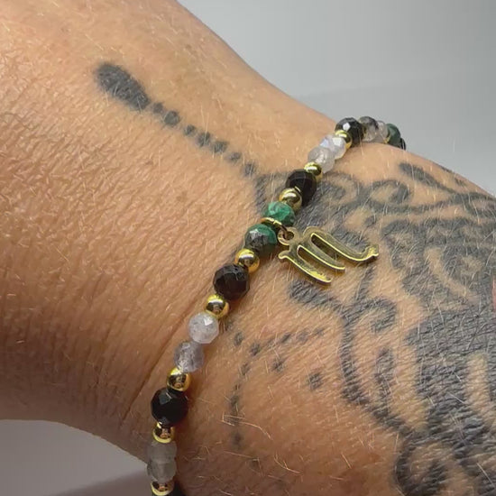 Scorpio Zodiac Beaded Bracelet – Black Tourmaline, Malachite & Labradorite for Protection & Intuition