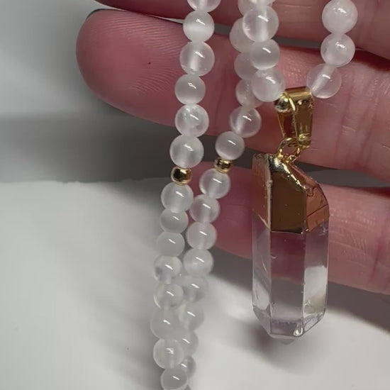 ๐ค Elevate Your Energy โ Handmade Selenite & Clear Quartz Necklace